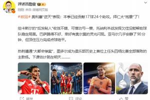 奥利塞“逆天”表现:本季已经贡献17球24个助攻。拜仁太“残暴”了!