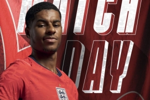 英格兰队官方社媒晒出为此役制作的海报,队内前锋拉什福德单人出镜。